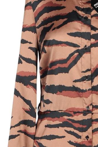 | Détails | Satin, Manches longues, Col rond, Patte de boutonnage avant, Zèbre |