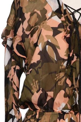 | Détails | Franges, volants, Chiffon, Manches longues, Encolure en V, Élastique/cordon de serrage, Fleuri |