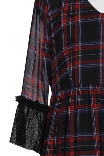 | Détails | volants, Tulle, Manches trois-quarts, Encolure en V, Carreaux |