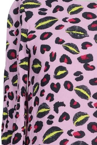 | Détails | Jersey, volants, Manches trois-quarts, Col rond, Léopard |