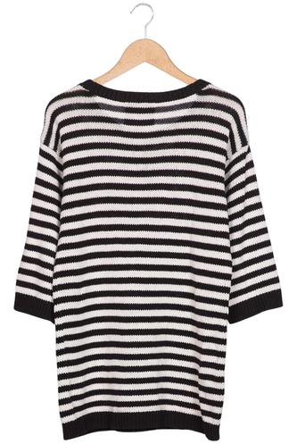 | Détails | Grosse maille, Manches trois-quarts, Col rond, Rayures |