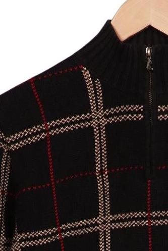 | Détails | Grosse maille, Manches longues, Col rond, Carreaux |