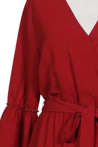 | Détails | Jersey, volants, Manches trois-quarts, Ceinture, Cache-cœur, Encolure en V, Uni |