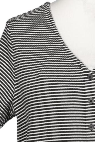 | Détails | Jersey, Manches courtes, Encolure en V, Patte de boutonnage avant, Rayures |