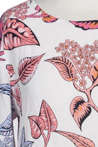 | Détails | Jersey, Manches trois-quarts, Col rond, Fermeture éclair/boutons arrière, Fleuri |