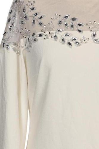 | Détails | Strass, Tulle, Manches longues, Encolure en V, Fermeture éclair/boutons arrière, Uni |