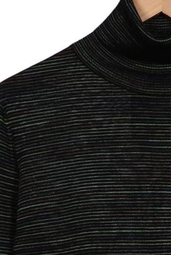 | Détails | Grosse maille, Manches longues, Col roulé, Rayures |