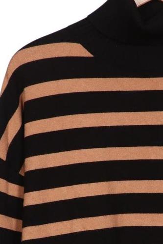 | Détails | Grosse maille, Manches longues, Col roulé, Rayures |