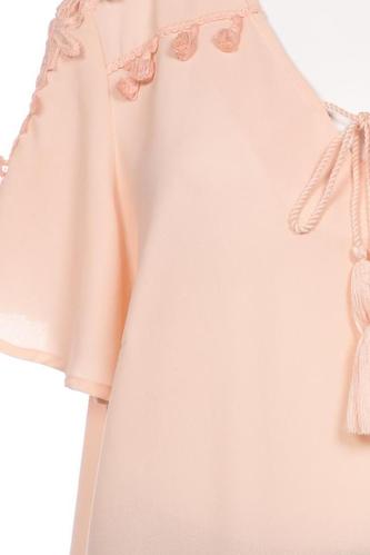 | Détails | Franges, Chiffon, Manches courtes, Encolure en V, Sans fermeture, Uni |