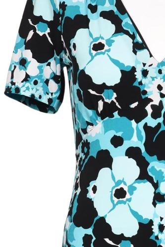 | Détails | Jersey, volants, Manches courtes, Encolure en V, Fleuri |