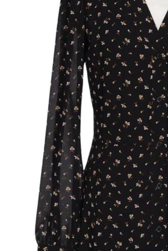 | Détails | Chiffon, Manches longues, Encolure en V, Fleuri |