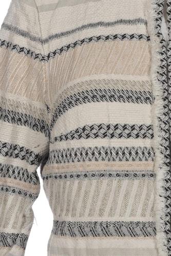 | Détails | Franges, Grosse maille, Manches trois-quarts, Col rond, Patte de boutonnage avant, Rayures |