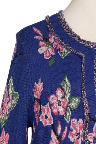 | Détails | Franges, Grosse maille, Manches trois-quarts, Col rond, Patte de boutonnage avant, Fleuri |