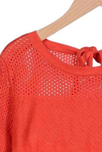 | Détails | Grosse maille, Manches courtes, Col rond, Uni |