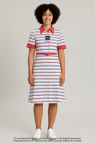 | Détails | Jersey, Manches courtes, Ceinture, Col rond, Patte de boutonnage avant, Rayures |