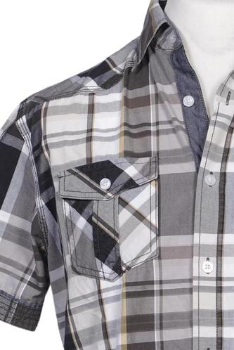 | Détails | Manches courtes, Patte de boutonnage avant, Manchettes à revers, Carreaux |