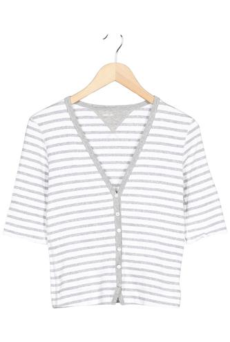 | Détails | Jersey, Manches trois-quarts, Encolure en V, Patte de boutonnage avant, Rayures |
