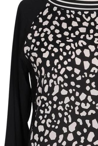| Détails | Grosse maille, Manches trois-quarts, Col rond, Léopard |