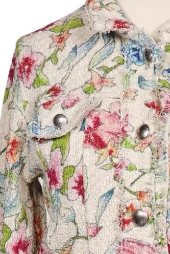 | Détails | Manches longues, Col rond, Patte de boutonnage avant, Fleuri |