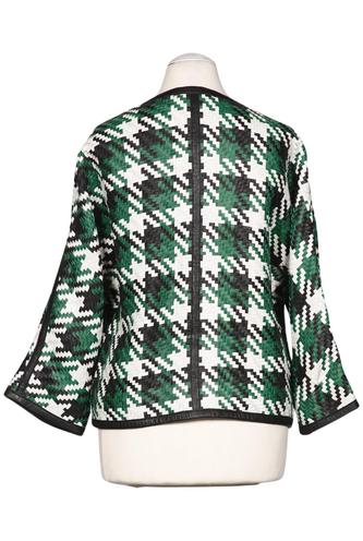 | Détails | Grosse maille, Manches longues, Col rond, Patte de boutonnage avant, Pied-de-poule |