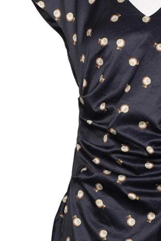 | Détails | Satin, Manches courtes, Encolure en V, Fermeture éclair/boutons arrière, À pois |