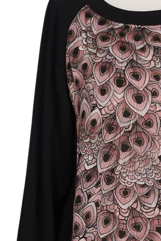 | Détails | Jersey, Manches trois-quarts, Col rond, Fleuri |