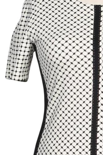 | Détails | Jersey, Manches courtes, Col rond, Fermeture éclair/boutons arrière, À pois |