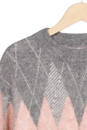 | Détails | Grosse maille, Manches longues, Col rond, Argyle |