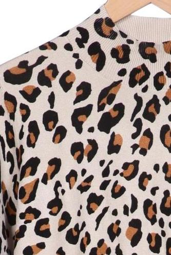 | Détails | Grosse maille, Manches longues, Col roulé, Léopard |