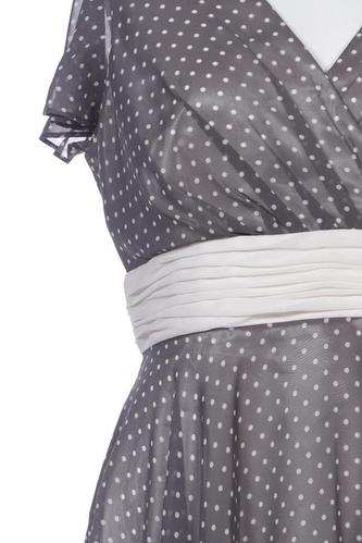 | Détails | Chiffon, Manches courtes, Ceinture, Encolure en V, Fermeture éclair/boutons arrière, À pois |