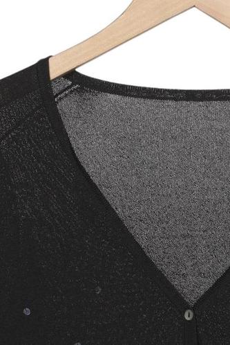 | Détails | Sequins, Grosse maille, Manches longues, Patte de boutonnage avant, Uni |