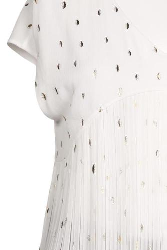 | Détails | Chiffon, Plissé, Métallique, Manches courtes, Encolure en V, Sans fermeture, À pois |