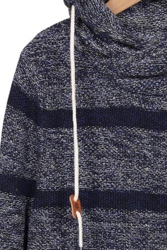 | Détails | Grosse maille, Manches longues, Col roulé, Capuche amovible, Rayures |
