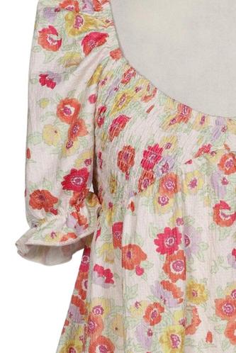 | Détails | Manches courtes, Encolure en V, Fleuri |