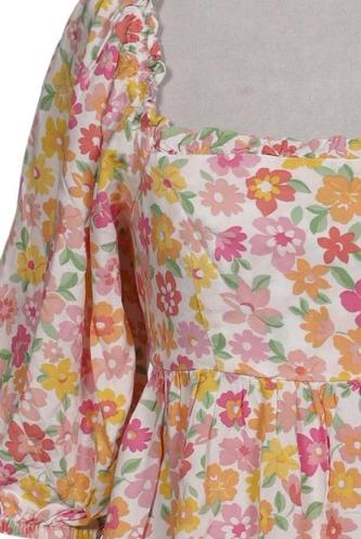 | Détails | volants, Manches courtes, Col rond, Fleuri |