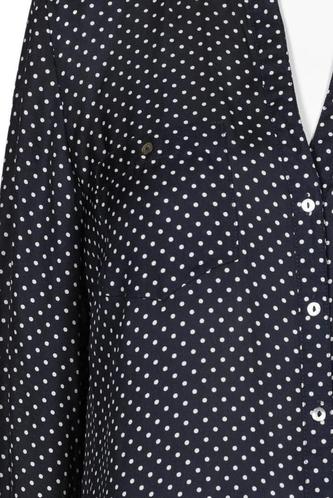 | Détails | Satin, Manches longues, Patte de boutonnage avant, À pois |