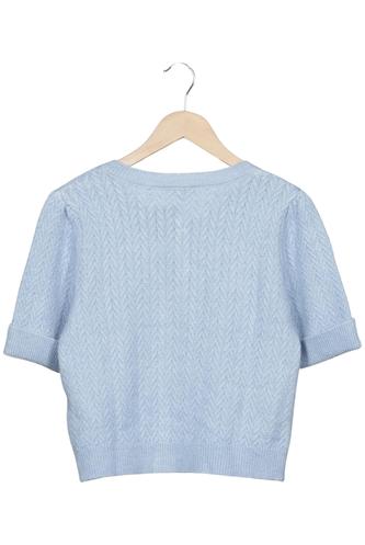 | Détails | Grosse maille, Manches courtes, Col rond, Patte de boutonnage avant, Uni |