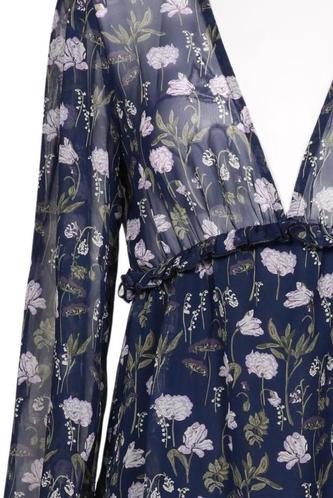 | Détails | volants, Chiffon, Manches longues, Encolure en V, Fleuri |