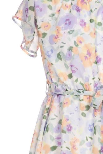 | Détails | volants, Chiffon, Manches courtes, Encolure en V, Élastique/cordon de serrage, Fleuri |