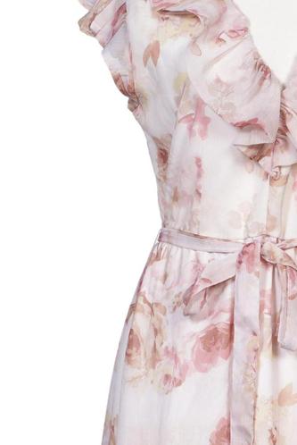| Détails | volants, Chiffon, Manches courtes, Ceinture, Encolure en V, Fleuri |