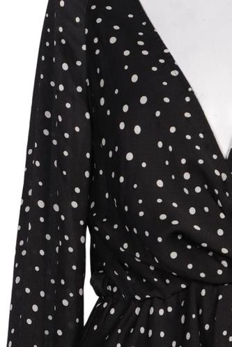 | Détails | Satin, Manches longues, Encolure en V, À pois |