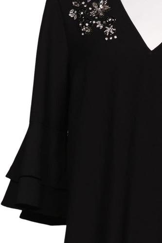 | Détails | Jersey, Broderie, volants, Manches trois-quarts, Encolure en V, Fleuri |