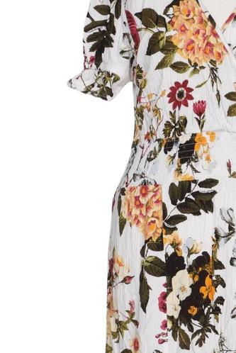 | Détails | volants, Manches courtes, Encolure en V, Patte de boutonnage avant, Fleuri |