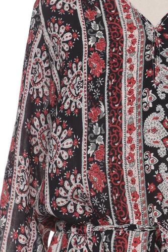 | Détails | Chiffon, Manches trois-quarts, Ceinture, Encolure en V, Élastique/cordon de serrage, Ethnique |