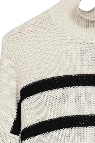 | Détails | Grosse maille, Manches longues, Col roulé, Rayures |