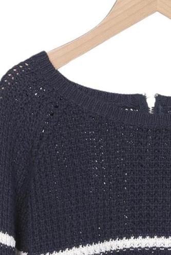 | Détails | Grosse maille, Manches longues, Col rond, Fermeture éclair/boutons arrière, Rayures |