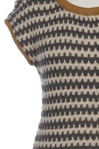 | Détails | Grosse maille, Manches courtes, Col rond, Fermeture éclair/boutons arrière, Rayures |