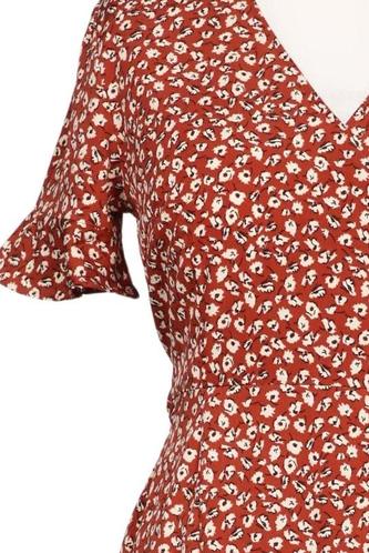 | Détails | volants, Manches courtes, Ceinture, Cache-cœur, Encolure en V, Fleuri |