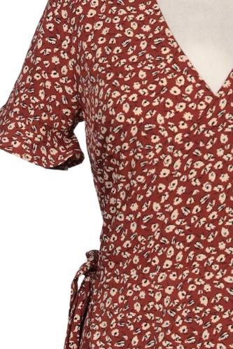 | Détails | volants, Manches courtes, Ceinture, Cache-cœur, Encolure en V, Fleuri |