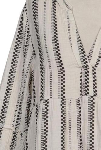| Détails | volants, Manches trois-quarts, Encolure en V, Rayures |